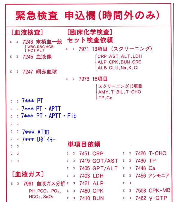 緊急検査室での凝固検査開始について 緊急検査室にて凝固検査の測定を開始します。 検査部での日中測定との相関を掲載しましたので、以下をご参照ください。 測定開始項目 プロトロンビン時間(PT) 活性化部分トロンボプラスチン時間(APTT) フィブリノゲン アンチトロンビンⅢ(ATⅢ) D.Dダイマー また、旧OMR用紙には凝固検査をマークする部分がありませんが、以下の部分にマークすれば旧OMR用紙も使用可能です。 旧OMR用紙