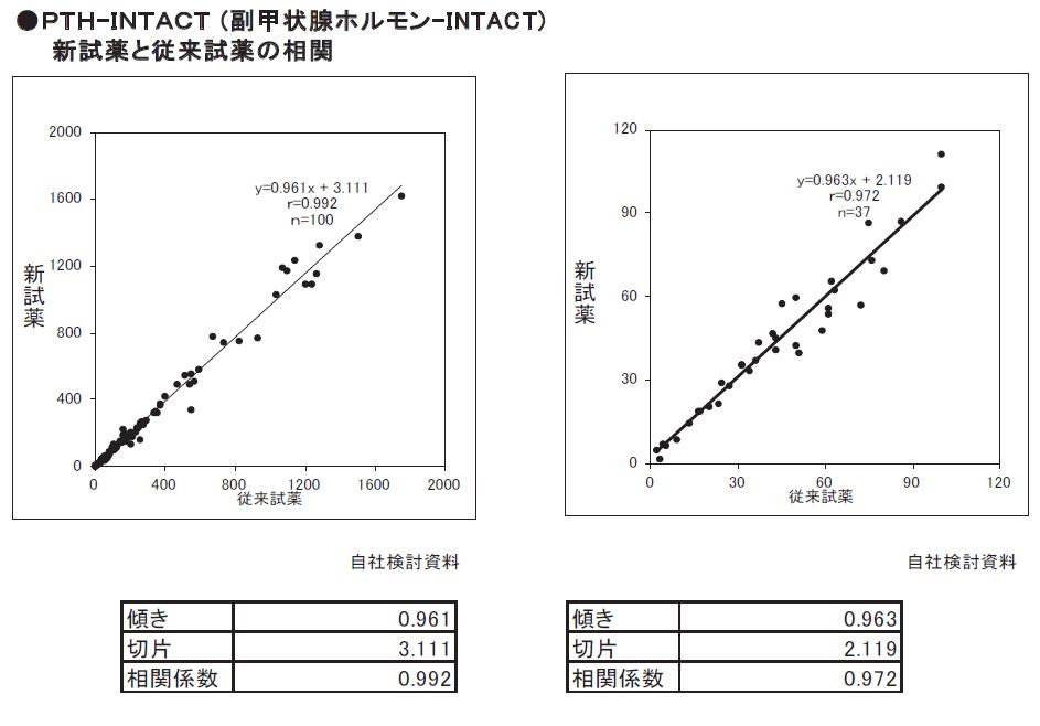 PTHはN末端に生理活性を有し, C末端フラグメントは生物学的には不活性であるが, 血中半減期が長く安定である. 一方, C末端フラグメントは腎より排泄されるので, 腎不全例では排泄不良のため血中で高値をみることがあるが, インタクトはその影響を受けにくく, また生理的活性があるので現在では最もよく測定される. ただし, 不活化を防ぐために採血後ただちに冷却下で血漿を分離する必要がある.